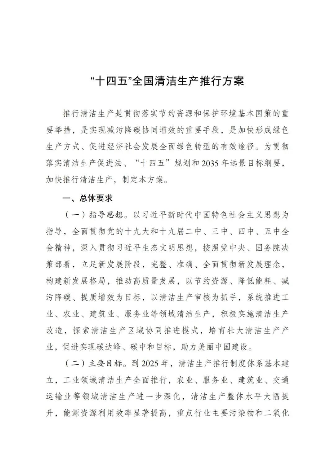 ??《“十四五”全國清潔生產(chǎn)推行方案》已經(jīng)國務(wù)院同意,現(xiàn)印發(fā)給你們,請結(jié)合實際抓好貫徹落實。
