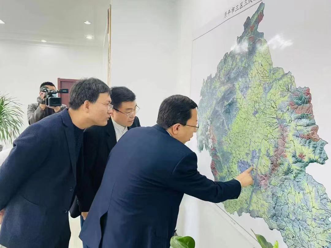 市委副書記、市長(zhǎng)常永峰結(jié)合原平市規(guī)劃圖進(jìn)行項(xiàng)目戰(zhàn)略規(guī)劃布局